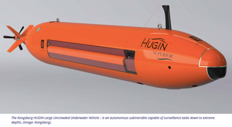 RFA Proteus will be dedicated to safeguarding Critical Undersea Infrastructure (CUI) following increasing concern about the vulnerability of communications cables and energy pipelines to interference by hostile states. MROS a high-profile project for the Navy, was initiated under the guidance of former Defence Secretary Ben Wallace who understandably cancelled the National Flagship project in favour of MROS. (multi role ocean support) Proteus will be operated by a small RFA core crew of 26, augmented by around 50 RN specialists responsible for the undersea surveillance, survey and warfare systems. Originally designed to carry out a wide variety of seabed operations, Proteus comes well-equipped for her new task of monitoring CUI [Critical Undersea Infrastructure]. Its working deck provides shelter that allows the launch or recovery of submersibles in high-sea states that would not be possible with over-the-side systems. Heavy submersibles can be comfortably handled by the crane. The working deck can carry loads totalling up to 1,400 tonnes, most likely UUVs, stores and other equipment can be embarked in TEU containers. ROVs [Remotely Operated Vehicle], sensors or subsea equipment are typically connected to the ship by an umbilical tether that carries the control, power and communications cables. The ship has some hydrography capabilities and is fitted with a Multi-beam Echo Sounder and other instruments for surveying the seabed. Several large spaces are available for use as operations rooms for planning, command and control of missions. For reasons of operational security, the RN has so far said little about the MROS concept of operations and the areas where Proteus will be employed. It is initially employed in more of a deterrent role, deploying a series of UUVs and sensors that monitor vulnerable sites and send periodic reports back to the ship or headquarters ashore. Part of the task will be about handling large amounts of sensor data looking for anomalies that may indicate preparations for attacks or non-kenetic malign activity. The biggest concentration of vulnerable infrastructure from a UK perspective is clearly in the North Sea and this will probably be the main focus. There are also critical data cables connecting Europe with North America in the Atlantic as well as installations of interest to the UK and NATO partners in the Baltic and Norwegian Sea. To be effective, a single MROS vessel must be part of a much wider effort. In Feb 2023 NATO established a new CUI Coordination Cell at its headquarters in Brussels to improve cooperation between military and industry stakeholders. The sabotage of the Nord Stream pipeline in Sept 2022 resulted in a significantly increased NATO presence around key infrastructure involving warships and maritime patrol aircraft. Details of exactly what off-board systems will be deployed from Proteus remain sketchy but it is known the MoD has purchased three Kongsberg HUGIN LUUVs which can conduct surveillance and surveys down to depths of 6,000m.
