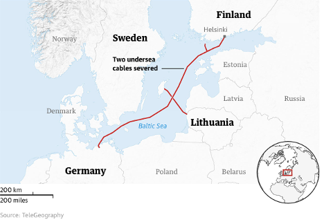 On October 8, 2023, the Balticconnector gas pipeline linking Finland and Estonia was severed, with Finnish investigators identifying the Chinese vessel New Polar Bear as the likely culprit due to anchor dragging. Estonian authorities also suspect the same vessel damaged undersea telecom cables between Estonia, Finland, and Sweden the previous day.
