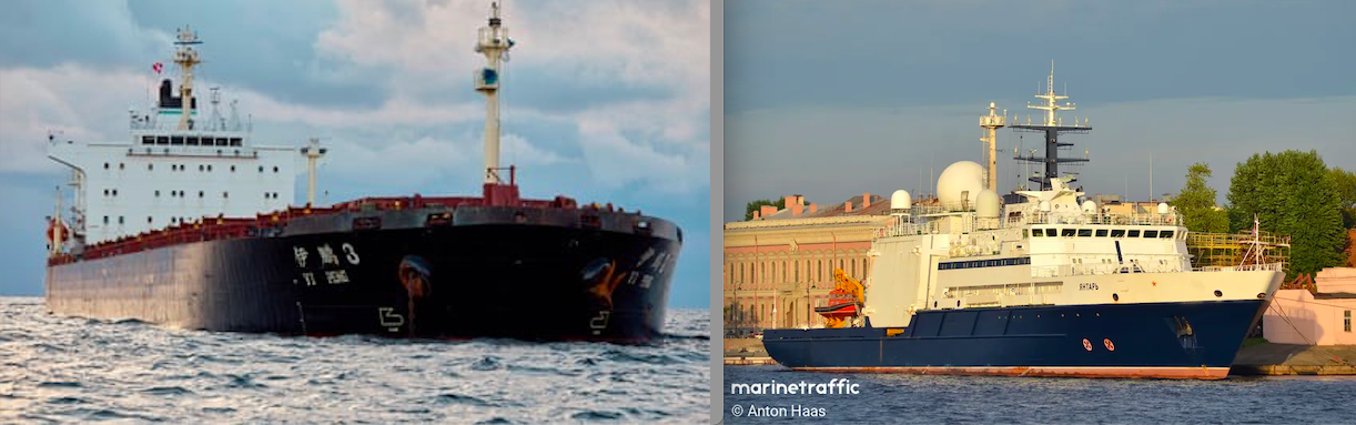 1- Yi Peng 3- suspected Chinese boat 2- Russian vessel Yantar, suspected of conducting surveillance operations in UK waters.