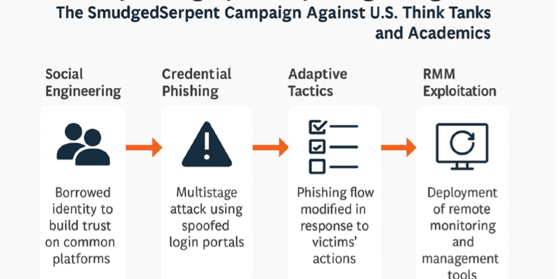 Iran’s cyber espionage apparatus has entered a new phase of strategic maturity, marked by increasingly sophisticated targeting of U.S. academic institutions and policy think tanks. The SmudgedSerpent campaign, attributed to the threat actor UNK_SmudgedSerpent, exemplifies this evolution—blending social engineering, credential harvesting, and covert remote-access techniques to infiltrate environments traditionally considered low-risk. This report examines the technical tradecraft behind the operation, its geopolitical objectives, and the broader implications for research communities vulnerable to nation-state surveillance. Through detailed analysis and visual mapping of tactics, techniques, and procedures (TTPs), we reveal how Tehran’s cyber units are reshaping the intelligence landscape far beyond conventional espionage.