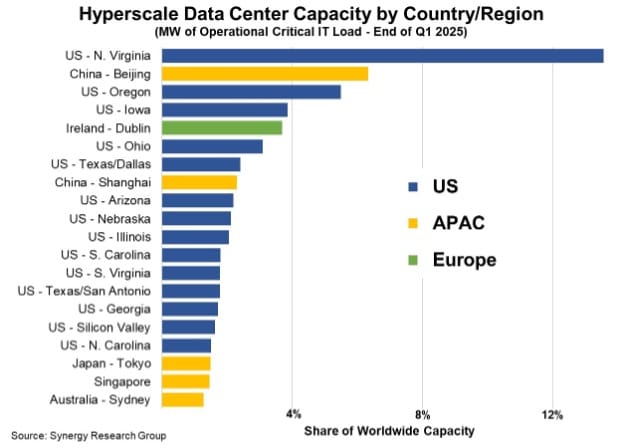 Northern Virginia leads the ranking, followed by Beijing, Shanghai, London, and Tokyo. Meanwhile, growth hotspots like Lagos, Warsaw, Dubai, Austin, and Kuala Lumpur demonstrate how power availability, real-estate affordability, and regulatory flexibility drive expansion into emerging markets.